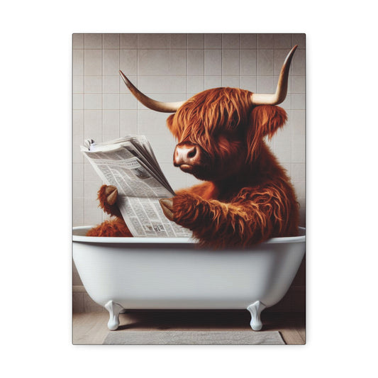 Highland Cow Playful Vintage Bathtub Wall Canvas