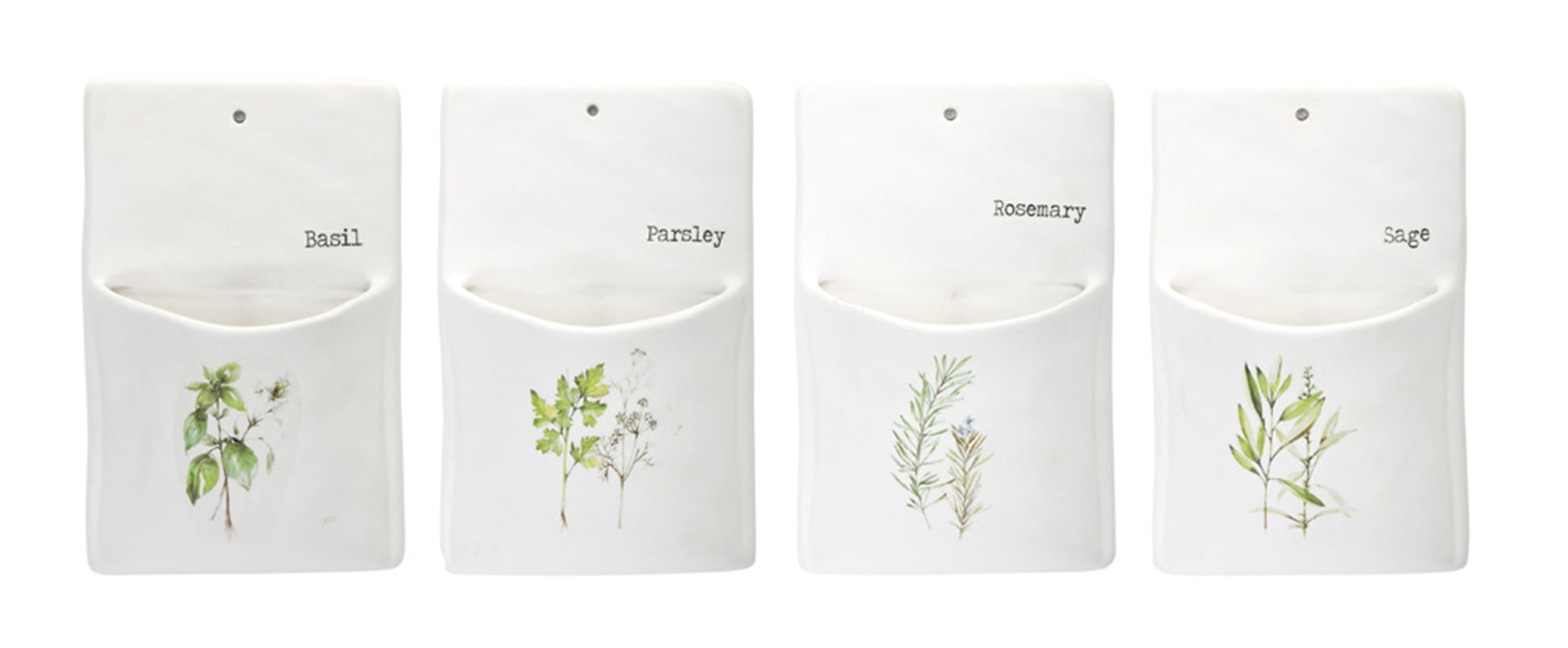 Set of 4 Ceramic Herb Wall Pockets