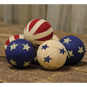 Americana Rag Balls come in a set of 6 and feature assorted red, white, and blue rag strips. Each ball measures 2½" in diameter.